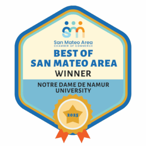 Notre Dame de Namur University’s Bachelor of Science in Business Administration Degree Completion program is a fully online, flexible program designed for students with 45+ transferable credits to efficiently finish their degree. With no scheduled classes and regular faculty interaction, it equips students with practical business skills to advance their careers.